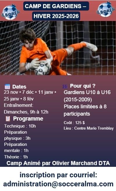 - Les jeunes doivent être gardien ou gardienne dans uen équipe de l'été 2025